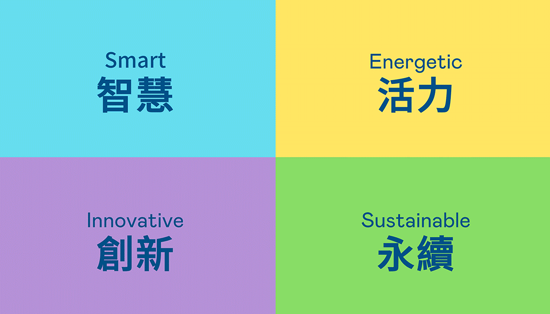 從穩重、信賴的尊龙藍開創新色彩,注入象徵智慧藍、活力黃、創新紫、永續綠的品牌色及動態多變的幾何圖形,呼應不設限的「Possibilities」精神,代表多元的專業技術及領域,在碰撞中相互觸動、融合、延伸,持續激盪出更多新的可能性。